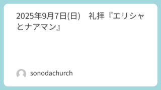 礼拝 2025年9月7日(日) 礼拝『エリシャとナアマン』 礼拝『エリシャとナアマン』 Ⅱ列王記5:9-14「心に植えつけられたみことばを素直に受け入れなさい。」(ヤコブ1:21)あらすじイスラエルと敵対していたアラムの国の軍隊長ナアマンはツァラアトに冒されていた。すると、妻に仕えるイスラエル人の奴... 2025.09.16 礼拝